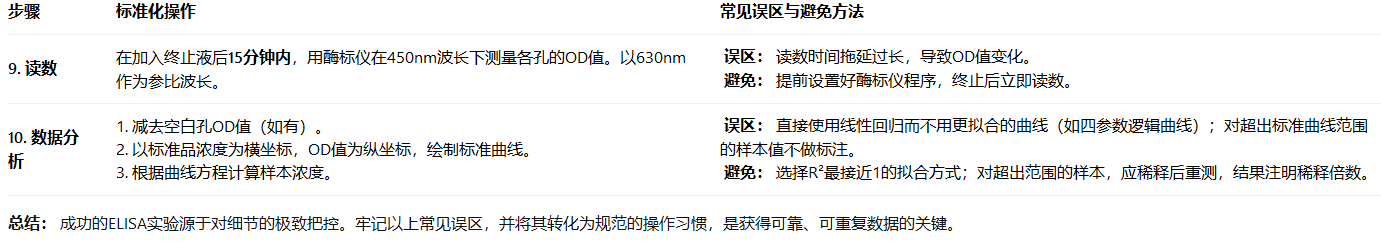 总结: 成功的ELISA实验源于对细节的致把控。牢记以上常见误区,并将其转化为规范的操作习惯,是获得可靠、可重复数据的关键。